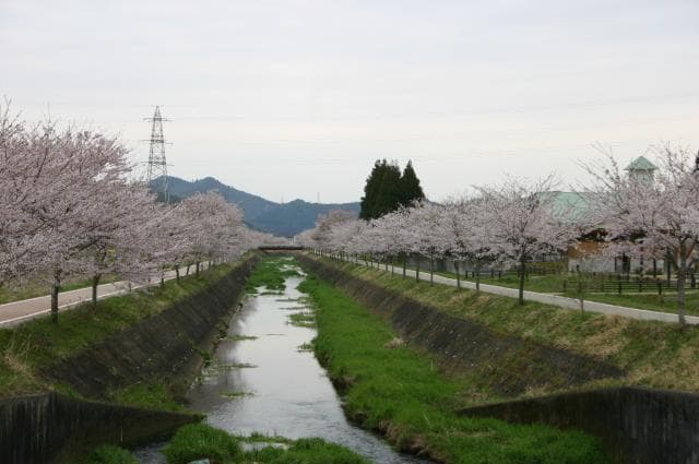 サイクリングロードは堤防道路が整備され安心して走れます。春には500本を超える桜が咲き誇ります。