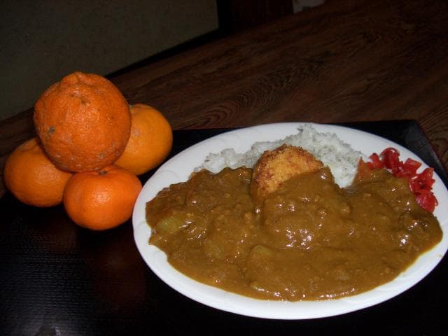市来地域の特産品であるポンカンのピューレをカレーに混ぜ、フルーティーな味わいが人気を呼んでいます。