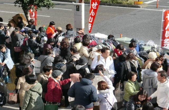 一般向けに格安で衣料品を販売する「せんい祭」。婦人服、紳士服、礼服、子供服、洋品、呉服、寝具、傘、雑貨などが販売され、買い物を楽しむ沢山の人々で賑わいます。