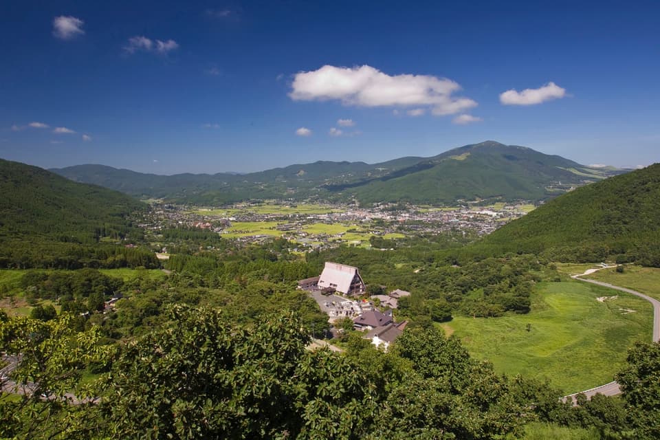 由布岳(標高1,584m)は、豊後富士として知られ万葉集にも詠まれた由布院を象徴する美しい山です。晴天時には由布院盆地、別府湾、くじゅう連山を一望できます。