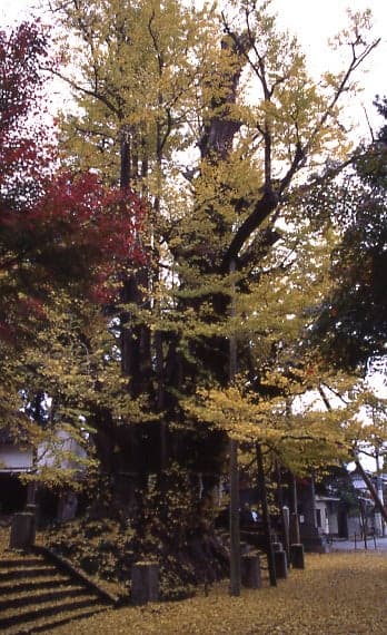大正8年に定められた「史蹟名勝天然記念物法」の基準項目の「1 社叢、著しい並木、名木、巨樹、老樹」にあたることから、大正15年に国指定の天然記念物に指定されました。現在、このイチョウの木は幹周り12メートルで、その太さでは富山県内の全樹木の中で第一位にランクされています。また、イチョウの雌株としては全国でも第一位ともいわれています。長年の風雪や落雷により、主幹部の上部は失われ、中央部に腐食部分が見られましたが、平成3年には国の補助を受けて樹木医による樹勢回復が行われました。