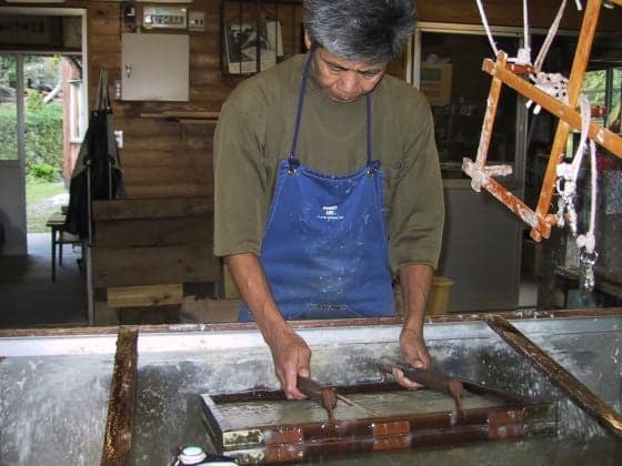 みつまたを主材料にした、手すき体験が出来、オリジナル手すき紙が出来る。