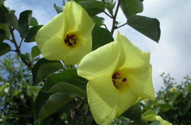 碧川に港があった江戸時代、海からの運航の目印として植えられたのが始まり。夏になると、ハイビスカスに似た黄色い花が咲きます。松阪市は国内の生息地では北限地とされています。