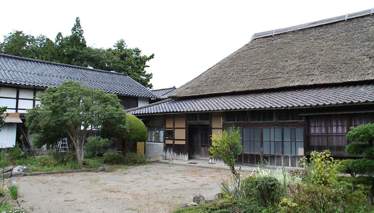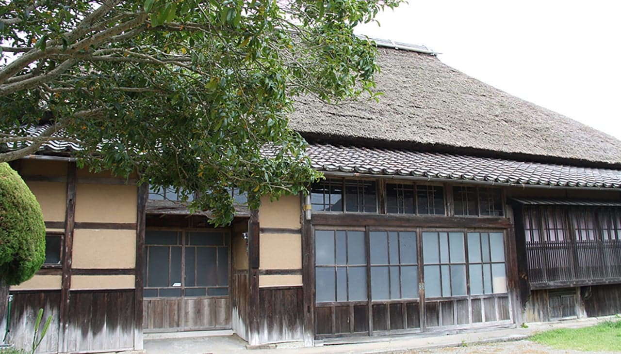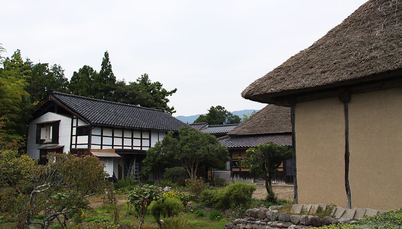 江戸時代に漢方医を開業し、代々「道益」の名を受け継いだ北條家の邸宅。茅葺屋根のどっしりとした長屋門をくぐると茅葺屋根や細い木柄が特徴的な主屋(国の重要文化財)があります。主屋の建築年代は18世紀後半と考えられています。庭木に囲まれた広い敷地には、そのほかに米蔵、家財蔵、味噌蔵が建ち並びます。