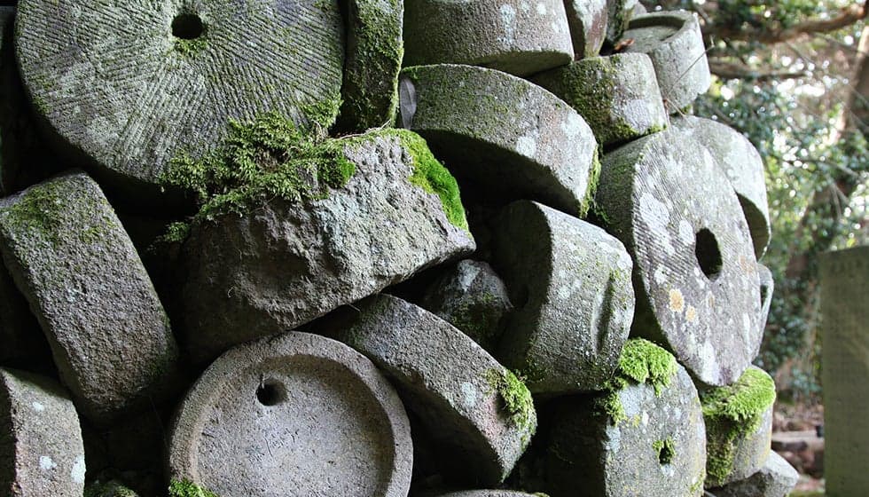 石工の里、佐渡小泊に眠る石臼たちの塚
