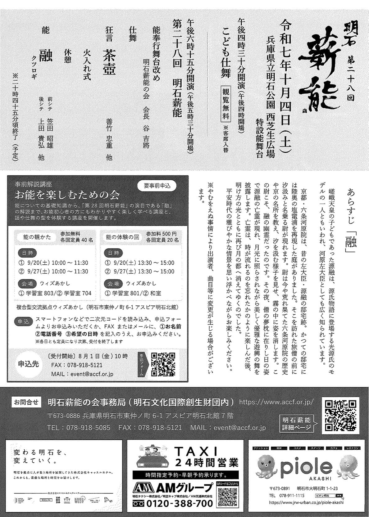 - 明石薪能の会事務局(明石文化国際創生財団内)