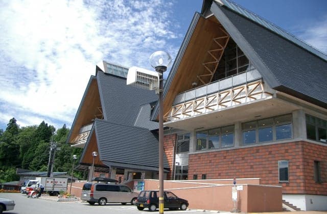 ひだ流葉スキー場に隣接する、流葉交流センターMプラザに併設された天然温泉。国道41号線沿いのユニークなふたつの三角屋根が目印です。