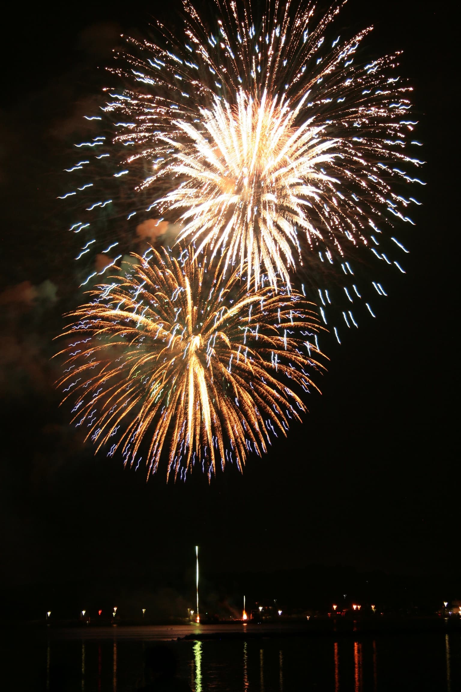 夜空を彩る色鮮やかな花火や、御船謡などの伝統行事が行われます