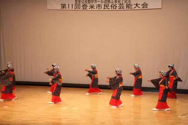 唄と踊り。「数え甚句」や「おいとこ節」に大網出身の歌舞伎俳優「助高屋高助」によって振付された踊り