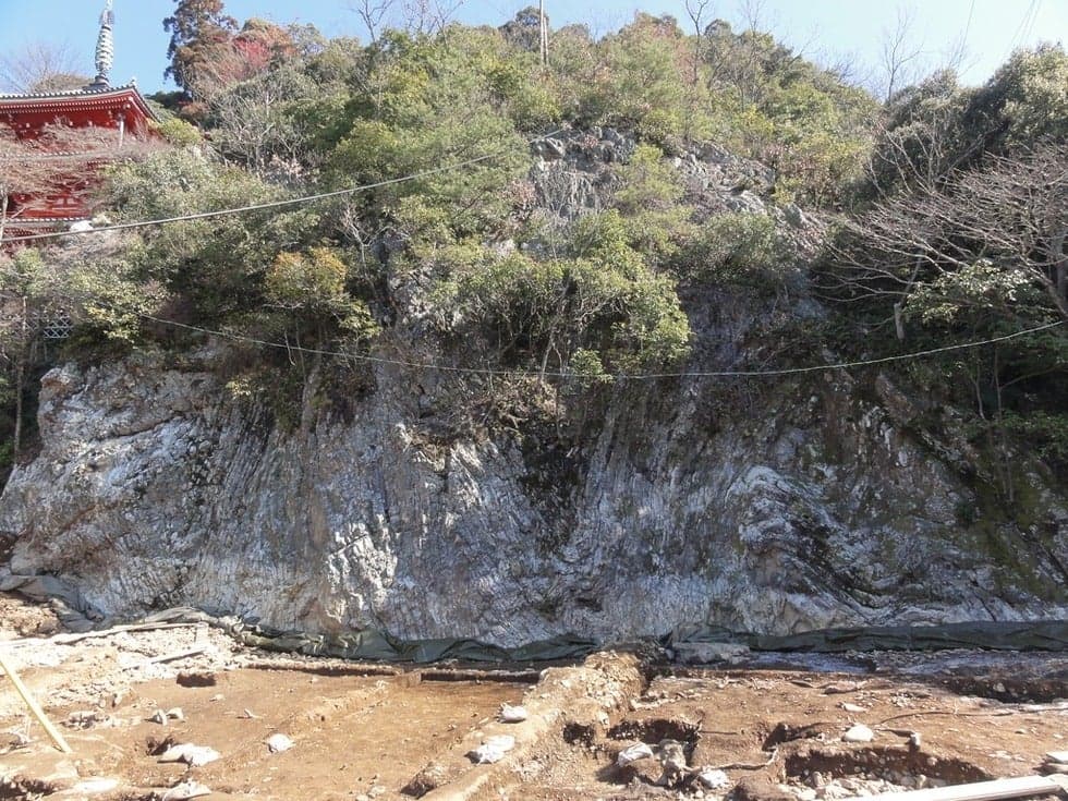 岐阜城の歴代城主の館は、金華山の西麓にある千畳敷下・槻谷(けやきだに)にあります。斎藤道三に始まる斎藤氏三代の頃に造られ、織田信長が大規模に造成・改修をしました。信長時代の館は発掘調査から、巨石を立て並べた入口や金箔瓦を使用した建物、巨大な岩盤を背景にした庭園などがあったことが分かりました。