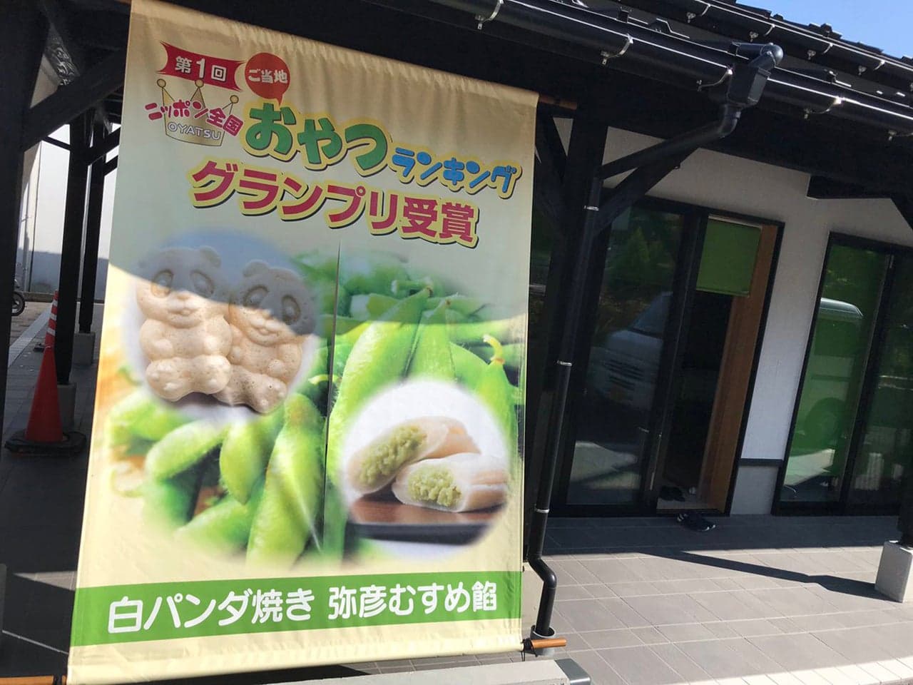 弥彦村の特産物である、やひこ娘(枝豆)を使用した餡(あん)を使い2010年に開催されたニッポン全国物産展「ご当地おやつランキング」でグランプリを受賞した、『白パンダ焼き弥彦むすめ(枝豆)餡』