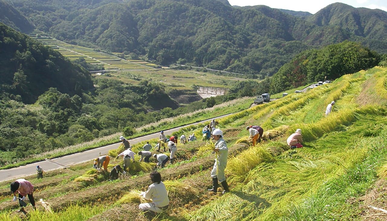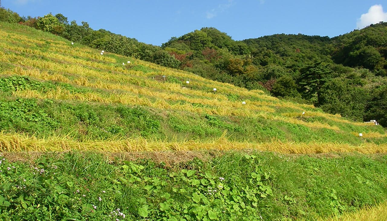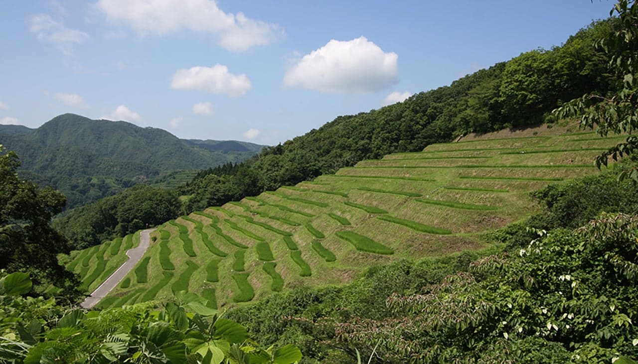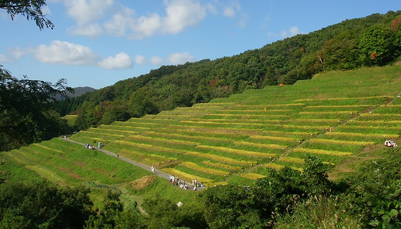 畑野から多田に抜ける181号線沿い、小倉ダム近くの山の傾斜に小さな田んぼが並んでいます。佐渡の代表的な棚田で、江戸時代に金山の繁栄に伴う人口増加に応じて開墾されたといわれています。休耕田や荒廃田になりかけた時期を乗り越え、平成20年頃からは棚田オーナー制度を取り入れながら管理・保全活動に取り組んでいます。