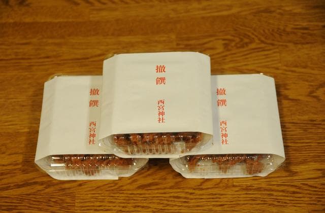 西宮神社は、応永2年(1395年)9月18日に摂津国(現在の兵庫県西宮市)の西宮神社総本社から、商業や漁業の守護神である「事代主神」(大国主命の子、通称「えびす様」)を勧請し、この地の産土神として祀ったのが始まりと伝えられています。春の大祭に氏子や崇敬者に販売される「とがらしごぼう」という食べ物は、「事代主神」のように常に笑顔と忍耐を忘れないでいれば、仕事も家庭も上手くいくと言われています。ひいては世の中も明るくすることができるという教え、つまり「怒って(とがって)はならない」という教えの言葉にちなんだ、味噌や牛蒡、唐辛子を使った食品です。