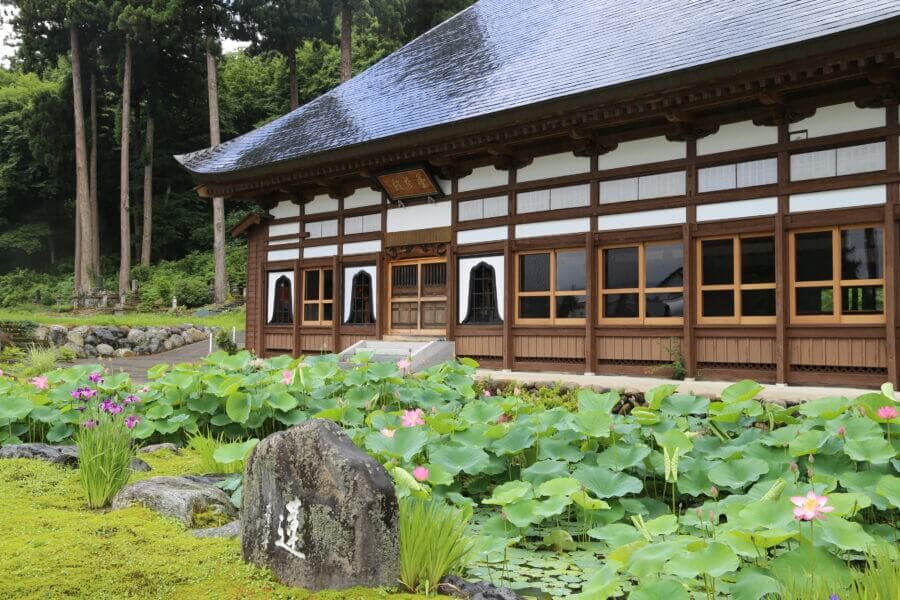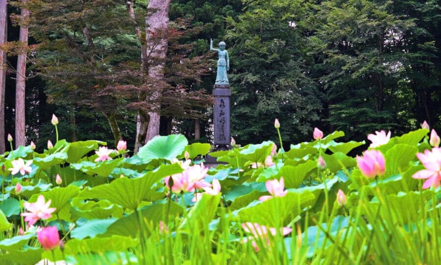 大賀博士が古代織物の研究で十日町に来市されたことが縁となり、昭和35年5月2日に小泉宝泉寺と二ツ屋へ移植されました。