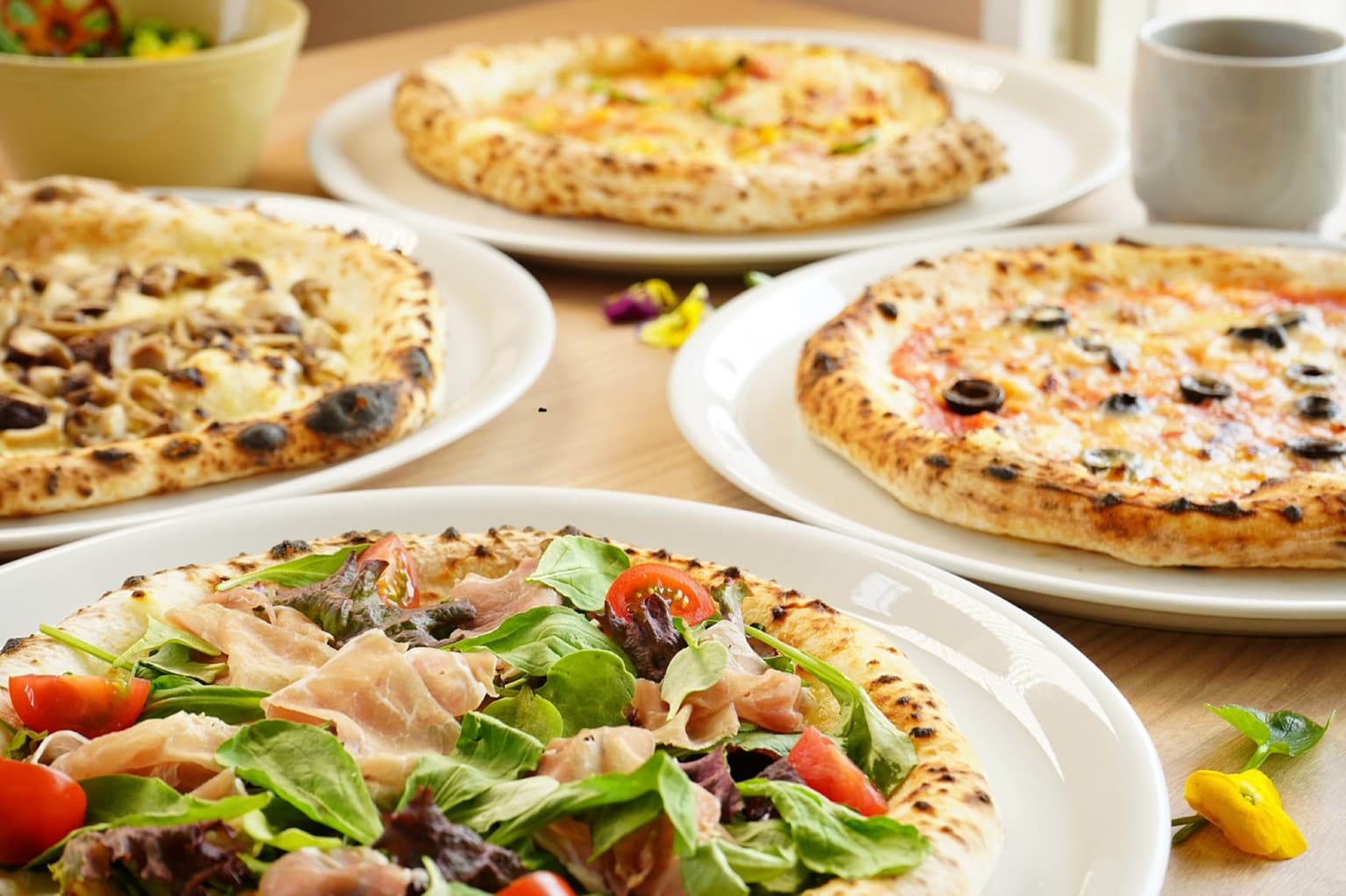 石窯ピッツァ&カフェ【Bamboo】では、各種ピッツァや季節の野菜を使ったメニュー、またスイーツも充実しています。