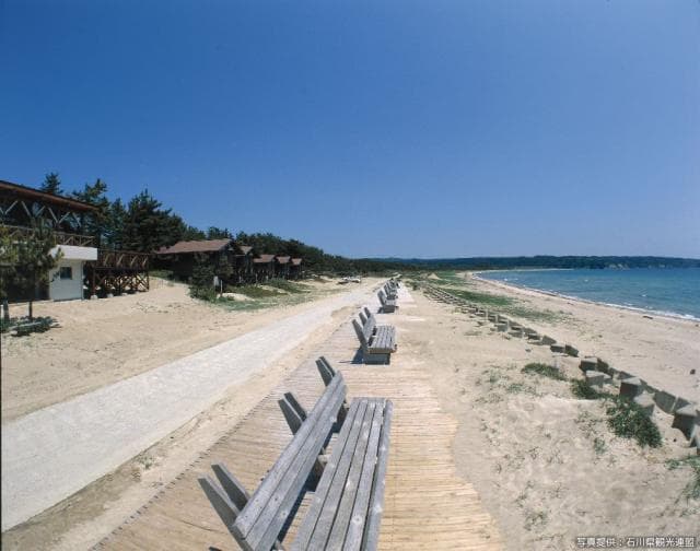 増穂浦は日本小貝三名所のひとつ。ケビンとテントを中心としたキャンプ場は,海水浴シーズンには混雑するが,それ以外なら能登の情緒をのんびりと楽しむことができる。釣り,サイクリング,テニスのほか,20人以上なら地引網もでき,近くには巌門やヤセの断崖などの見所も多い。水洗トイレ,温水シャワーあり。