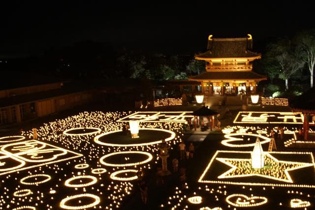 奈良薬師寺東関東別院、水雲山潮音寺において、毎年8月に多くの方々のご協力により実施されます。期間中毎日約1万灯の献灯がなされ、幻想的な世界に包まれます。宗派・宗教の枠に捉われず、誰もが参加できます。