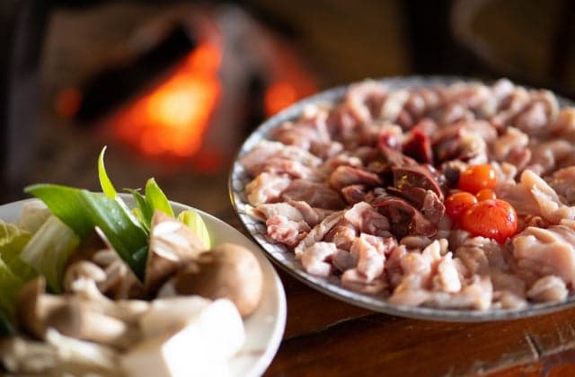 平飼い養鶏で、脂肪が少なく良質で身がひきしまっており、鶏肉本来の旨みが味わえる。