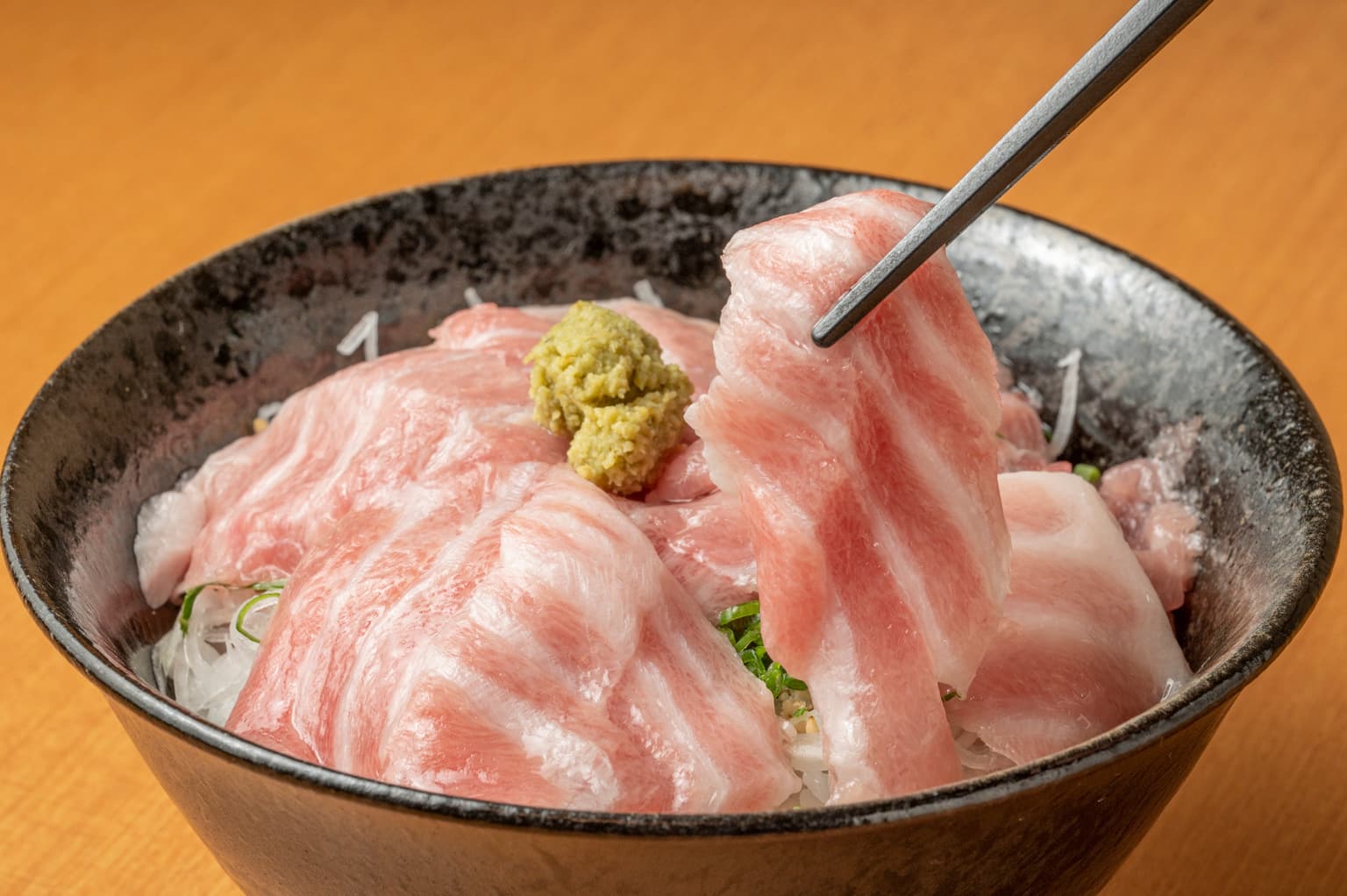 開店と同時に客が席を埋める津久見の人気店。母体の水産加工会社から直接届くマグロはどれも鮮度も味もピカイチ。津久見の高級養殖マグロ「ヨコヅーナ」の大トロ丼も赤身のマグロ丼も一つひとつの切り身が大きく食べごたえも十分!もう一つの名物「マグロちゃんぽん」は、あっさりスープに生でも食べられる新鮮なマグロのつくね団子がゴロリ。どちらも欲張りたい人には、ハーフ&ハーフのセットも。ランチは来店優先、夜は2日前までに予約を。