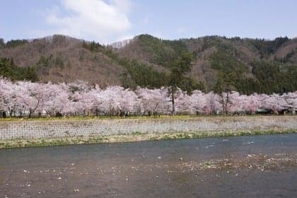 【飛騨・美濃さくら33選】公園全体が桜色となり、夜桜は川の流れとともに幻想的に浮かびあがる