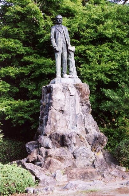 明治9年大久保利通の命を受け安積地方一帯の原野に、猪苗代湖の水を引く開田を設計したファンドールンの功績をたたえて建てられた。