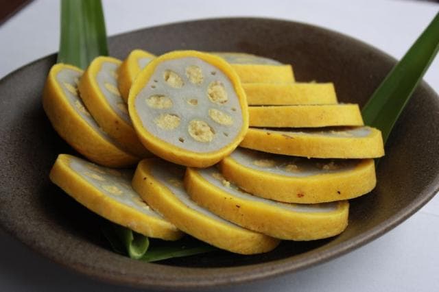 かつては藩主細川家の門外不出の料理だったが、明治時代以降、庶民の間に広がった熊本の代表的な郷土料理。れんこんの穴に辛子味噌を詰め、衣をつけて揚げたもの。市内の郷土料理店ならまずどこにでもある一品。