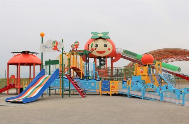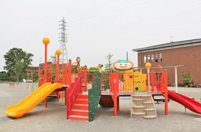 瑞穂市のマスコットキャラクター「かきりん」の大型遊具や11,000平米の広さがある芝生広場がある広場です。