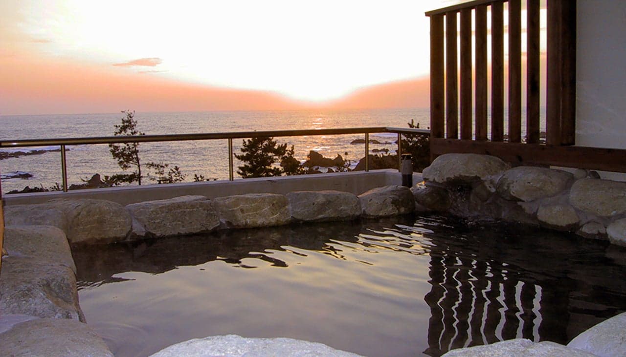 相川地区にある温泉地。ちょうど佐渡島の西岸にあたるため、雄大な日本海が眼下に広がり素晴らしい夕日を見ることができます。付近には、佐渡金山や佐渡奉行所など観光スポットが多いのも魅力です。