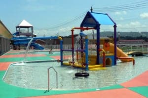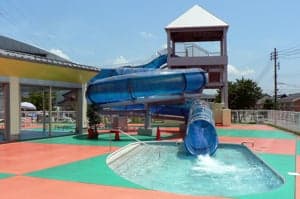 50mプールや児童・幼児プール、ウォータープレイシステム、休憩コーナーを設置し、親子でのびのび水泳学習や健康づくりができる施設です。7本のコースが並ぶ50mプールの屋根は開閉式パネル、側面は開閉幕を設置し、6月上旬から9月下旬には、天候を気にすることなく快適に泳ぐことができます。7月から8月には、児童・幼児用プールがオープンし、50mのウォータースライダーを滑り降りて、水しぶきをあげる子ども達で賑わいます。