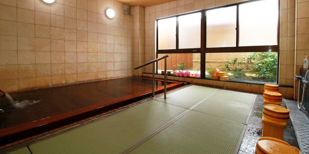 湯量豊富な天然温泉を畳敷きの檜風呂他2ヶ所の貸切風呂で堪能していただけます。