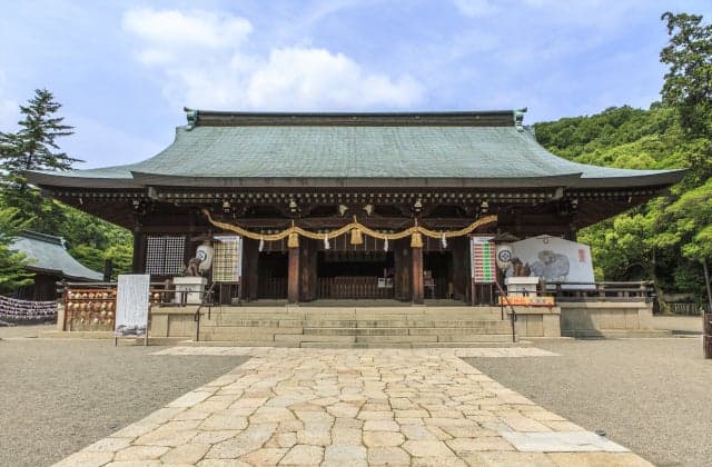 吉備国の総鎮守です。現在の本殿は1425年に再建されたもので、二つの屋根をつなぎ、一つにした比翼入母屋造のご本殿に拝殿が繋がる特殊な造りです。他に例がないことから特に「吉備津造」と呼ばれ国宝に指定されています。1月3日には鬼退治に由来する矢立の神事が行われます。吉備津三味線餅搗きについては未定。受付の窓口の時間:1月1日、午前零時~午前2時、午前7時~午後5時。1月2日~5日、午前7時~午後5時まで。1月6日~、午前9時~午後2時30分まで。
