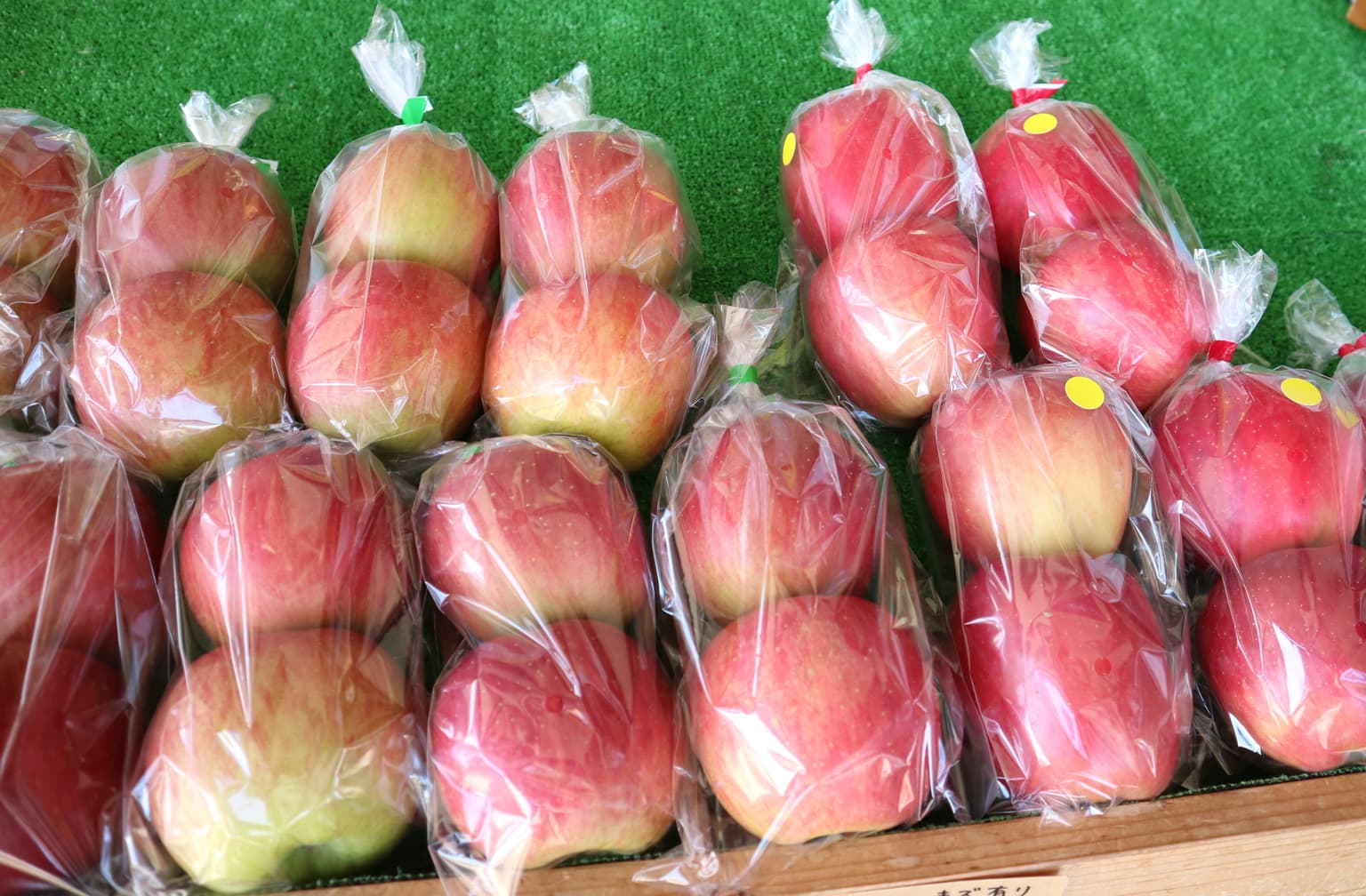 「つがる」や「ふじ」、「紅玉」、「レッドゴールド」、「ひめかみ」など沢山の品種が栽培されており、町内の果樹園に設けられた直売所や「道の駅なないろ・ななえ」他でお求めいただくことができます。