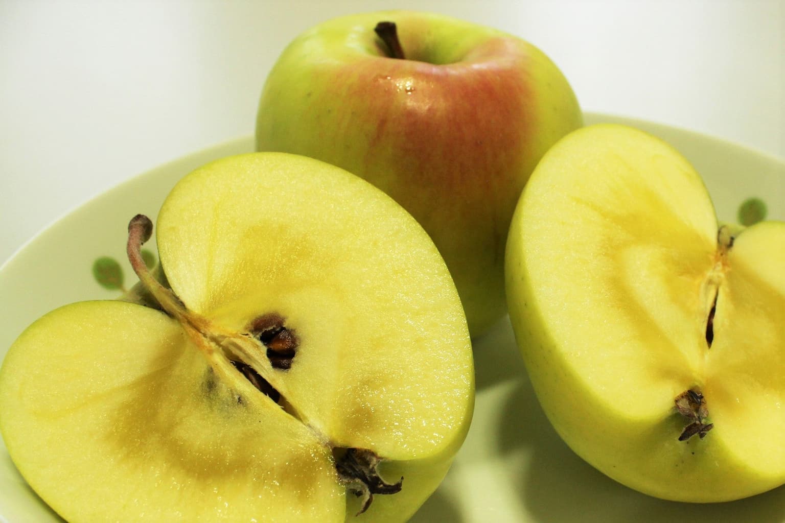 黄色い果実にほんのりと赤みが差した「ななみつき」は七飯町のブランドリンゴ。「ぐんま名月」の中でも大きさや形、糖度が高いものが「ななみつき」として選別されます。出回る時期は短いので、見つけたら是非お試しください。
