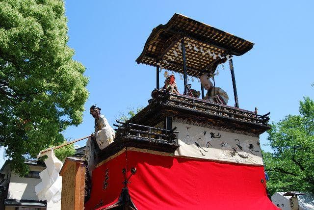 「福禄寿車」は指定文化財の山車で、4体のからくり人形が乗る大変貴重なもの。昭和60年の大祭より、神渡輿御、山車奉曳が復活し、市内を曳かれる山車の一行が、古式ゆかしい時代絵巻を今に伝えます。