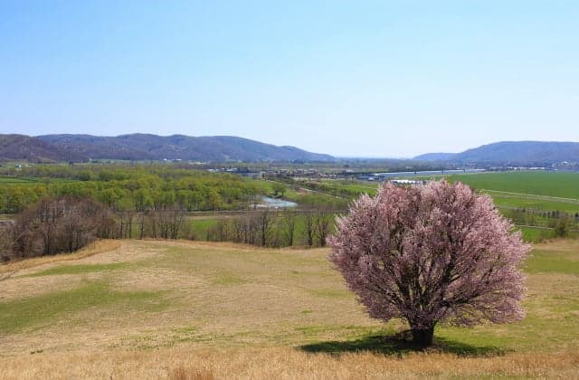 JRA日高育成牧場内の丘に立つ北海道最大の幹周を誇るエゾヤマザクラが発見され、近くを流れる「オバケ川」から「うらかわオバケ桜」と命名されました。