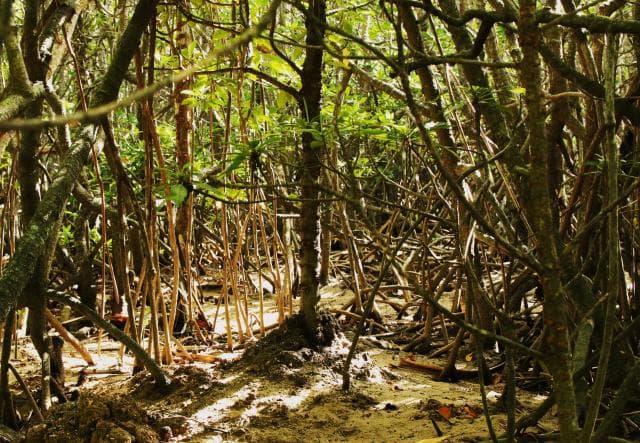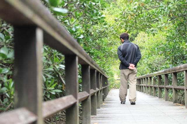 ヒルギの間に遊歩道があり、景色はヒルギで覆いつくされ、リフレッシュできる心地よい良い空間。