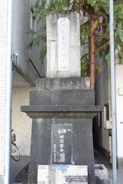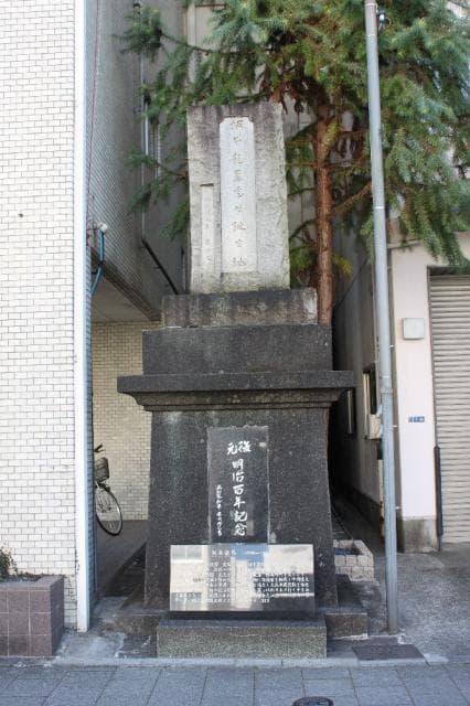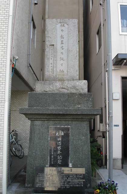 「薩長同盟」や「船中八策」など歴史的偉業を成し遂げた幕末の志士・坂本龍馬の生家があった場所には現在、石碑が建てられている。この付近から南の水通町までの一帯が龍馬の生家だったという。石碑の碑文は故吉田茂元首相の書。