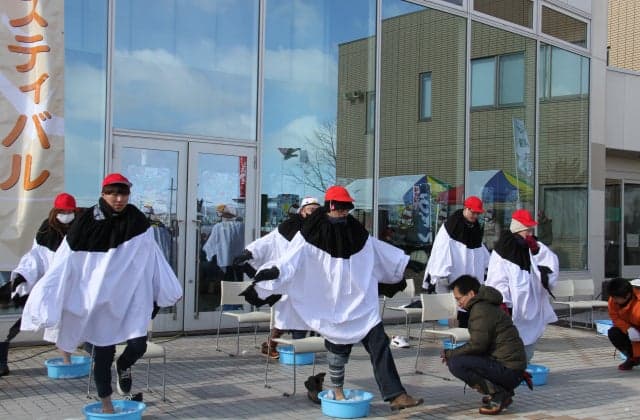片方の裸足で特設タライアイス(水に雪を入れたタライ)に立ち、何分耐えられるかを競う「耐寒ゲーム」や、「タンチョウの鳴きまねコンテスト」など、タンチョウにちなんだゲームが開催されます。テレビ番組で紹介されるなど、人気を集めています。