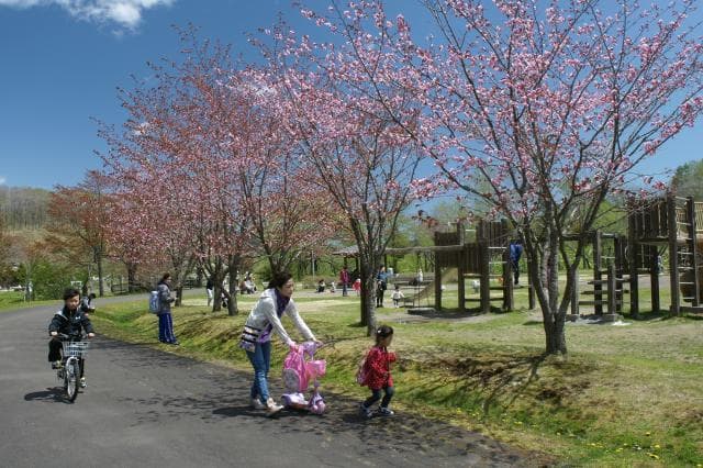夏季にはたくさんの子ども達が遊具で遊び、家族連れで賑わいます。