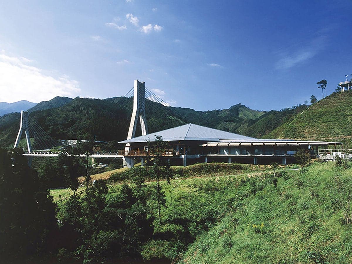 水と緑に囲まれ、北川ダムに架かる「唄げんか大橋」が目印の道の駅。