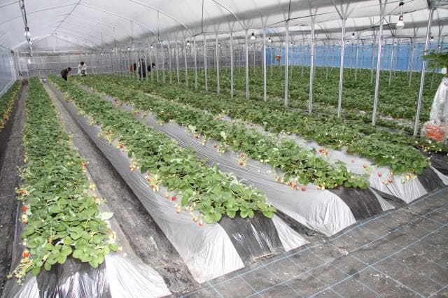林いちご園は、国道356号線沿いにある観光いちご園。いちごの王様アイベリーを栽培しています。人気のアイベリーは大粒でほどよい酸味と甘み、みずみずしくやわらかい食感が特徴です。近くには諏訪神社や天保水滸伝遺品館があります。