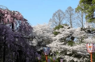 石清水八幡宮では、男山さくらまつりが開催され、奏楽・舞楽など様々な祭典行事が執り行われます。