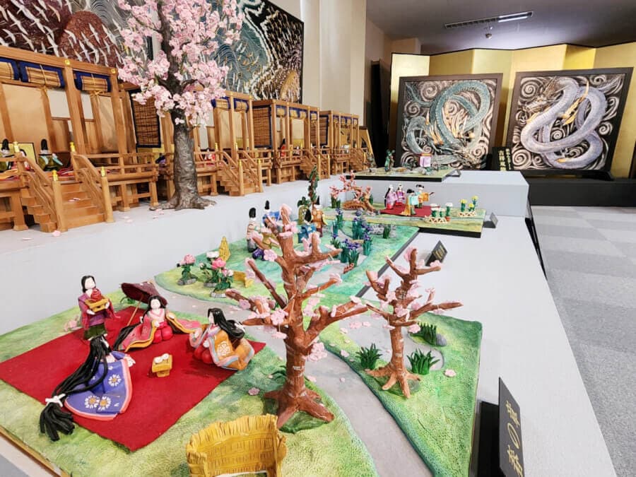 「源氏物語」、「百人一首」などをモチーフにした、紙ねんど人形約1,000体が並ぶギャラリー。