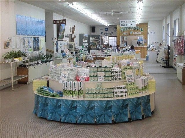 室内施設 その他 大駐車場を完備した施設は、アロエを使って開発されたボディー・ヘアケア製品「アロイズシリーズ」や健康食品等を展示・販売する本館、アロエの加工を行う加工場、世界のアロエ・約300種類を展示する温室で構成されています。