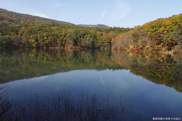 土湯の自然林の中にある全周約1,500mの湧水沼。初夏の新緑や秋の紅葉が美しく、周辺に水芭蕉群生地やモリアオガエル・ハッチョウトンボの生息地もある。