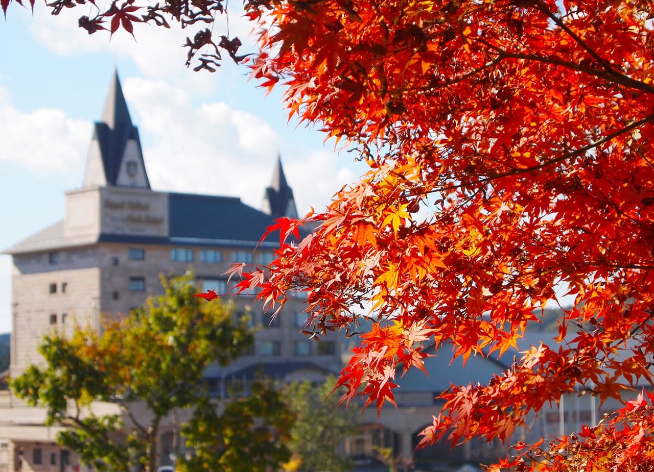紅葉の秋を胎内で満喫してください。