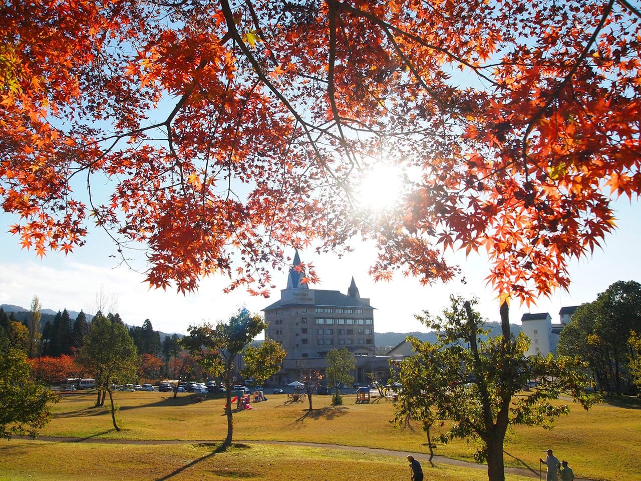 色鮮やかに染まった山々が周辺を覆い、