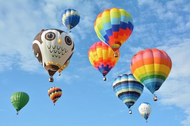 澄みきった真っ青な大空、限りなく広がる緑と黄金の穂波がうねる十勝・上士幌町で、たくさんの熱気球が舞い上がります。楽しい会場イベントも催されます。