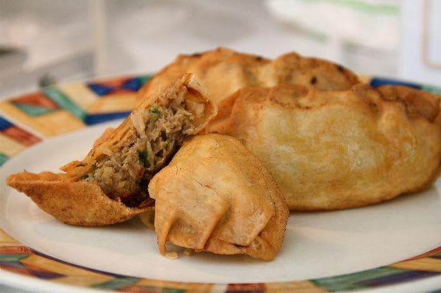 直径15cmの大きな皮で餡を包み、油で揚げた揚げぎょうざ。一度見たら忘れられないインパクトのある見た目と、油で揚げたパリパリな皮とジューシーな餡のおいしさです。