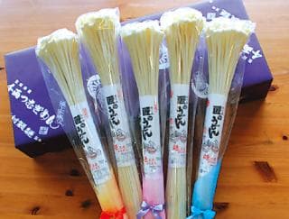 筑西市優良産品推奨品。 伝統の技が息づく『匠のうどん』。厳選した小麦粉に、水分をたっぷり含ませこね上げた麺は、独特の風味とコシ、滑らかなのどごしが自慢です。折ってからゆで上げるユニークな味わい方と、花束をイメージした愛らしいラッピングも、ご好評をいただいております。